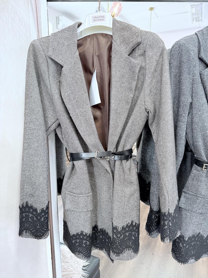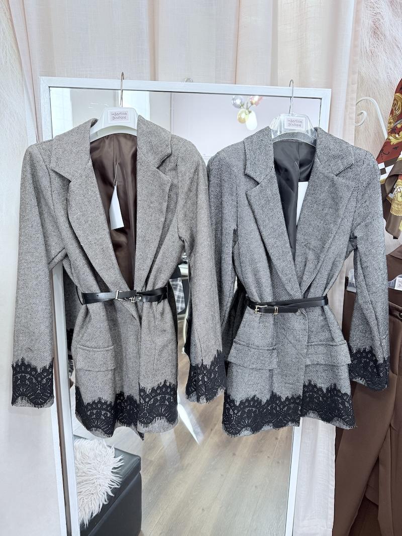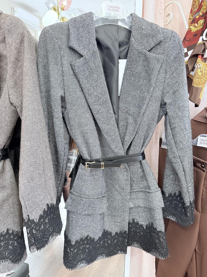 Giacca 1 bottone tessuto in lana effetto spinato.