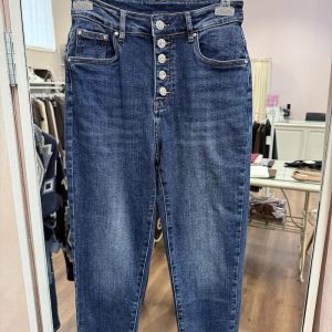 Giubbotto in tessuto di jeans di colore jeans classico con colletto e bottoni a pressione.